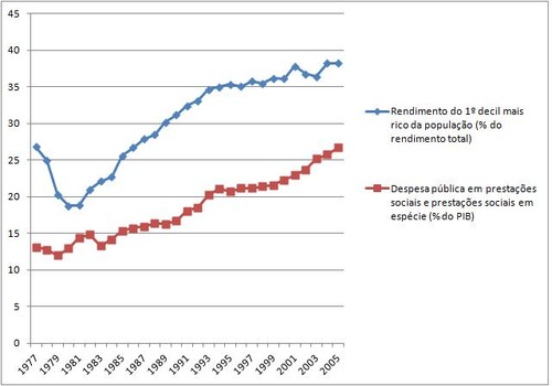 (Não consegui colocar duas escalas no mesmo excel. As fontes são o The World Top Income Databases e a Comissão Europeia)